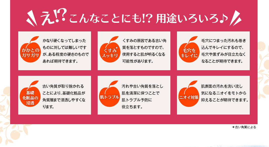 気になる部分につけてやさしくこするだけで、たまった古い角質をポロポロしてくれる自然派ピーリングジェルの『ぽろぽろとれる杏ジェル』。肌表面の不要な角質をとり除き、いつも生まれたてのピチピチ肌へ!