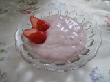 牛乳と混ぜるだけで作る事ができる家庭で手軽に楽しめる、果肉入りのデザートです。