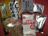 マルトモさんで当たりました 今日の晩御飯はこれを使って作ってみました 中身はこちら 山芋入りお好み焼き粉 合わせだし 揚げ玉 あおさ 鰹節 お水は使わずに 中に入っているお出汁でつくります 用意するのは 卵 豚肉 キャベツです 後は 材料をまぜまぜして焼くだけ … 2014/10/21