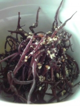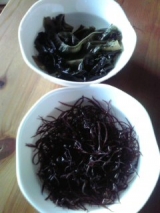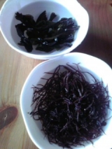 昨日、2週間くらい待って、やっと届いたこちら↓ ふるさと21さんの青森県産 天然わかめ&乾燥ふのり【遠藤農園】 ダイエット中の私に強力な味方が届きました(^^)ルン♪ ワカメはよく食べるけど、ふのりって家で食べたことないなぁ 早速、↑の2袋、水で戻してみたいと思います お水の中に… 2011/05/14