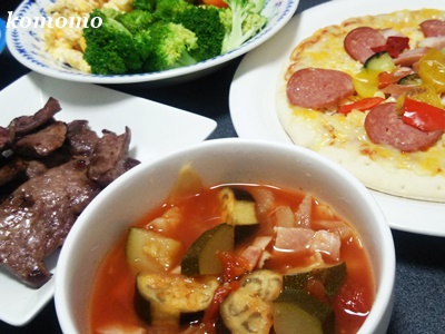 2015-2-6 晩御飯で作った 茄子の挟み揚げとズッキーニの天ぷら たねが残ったので手前2つ ズッキーニも挟みました 右手奥がズッキーニの天ぷら 少し繊維の感じる強いのが2切れ程あった 多分下に近い部分 心配していたマー君も しっかり食べて完食しました ミニ… 2015/02/07