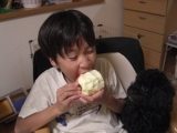 青森から立派なりんごが届いたよ 送ってくださったのは メディアフロント企業組合さま 田村りんご農園の 早生品種のりんご『未希ライフ(赤色)』と『黄王(黄色)』 生産者さんの顔が、りんごの箱にしっかり貼付してありました こうして顔が見えると、と… 2011/09/27