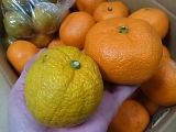 ・ゆず、ダイダイ、かぼす、すだち等の仲間の柑橘、果汁が多く酸味が強く、さわやかな風味の果実。