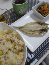 今日の夕ご飯は、こんな感じになりましたぁ↑↑↑ 久々過ぎって感じの鯵の干物の登場です♪♪♪今回、使った鯵の干物は、電子レンジ (ポケグリキッチンファンサイト参加中) を使って作るものです♪ ①電子レンジに入れる前 ②電子レンジに入れたあと(火傷に注意) 食卓では、こんな感じにぽちょんと… 2012/07/18