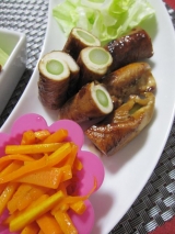 まだまだ続く…鶏むね肉星人とにんじん星人(笑)鶏むね肉をフォークで刺して、(肉の10㌫の水+肉の1㌫の塩+肉の1㌫の砂糖)にもみ込んでから、アスパラを巻いてフライパンで焼いてから、焼き肉のたれでじっくりと味付けする 鶏むね肉のさっぱり感と焼き肉のたれのこってり感がしっかりマッチして、食欲旺盛な… 2012/07/31