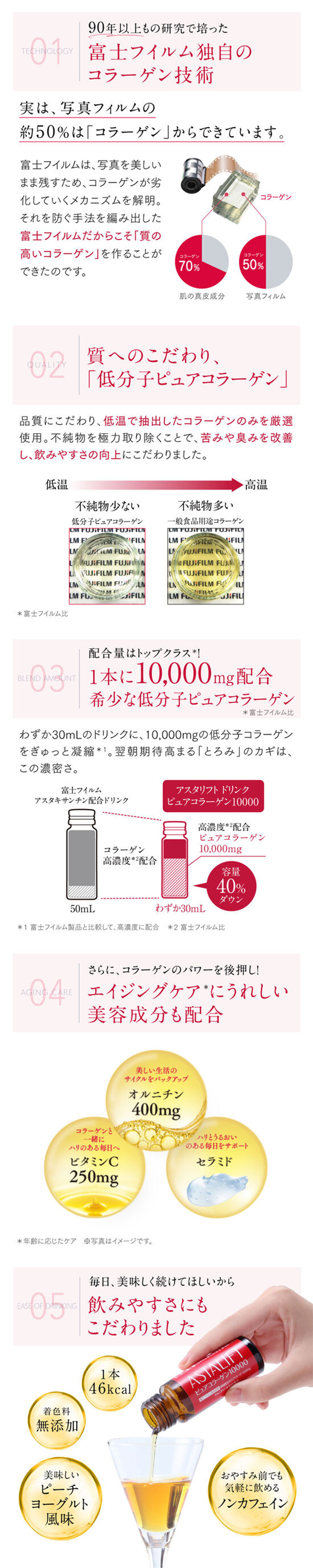 コラーゲンのエキスパートだからこそ、アスタリフトのコラーゲンドリンクは「質」×「量」にこだわっております。