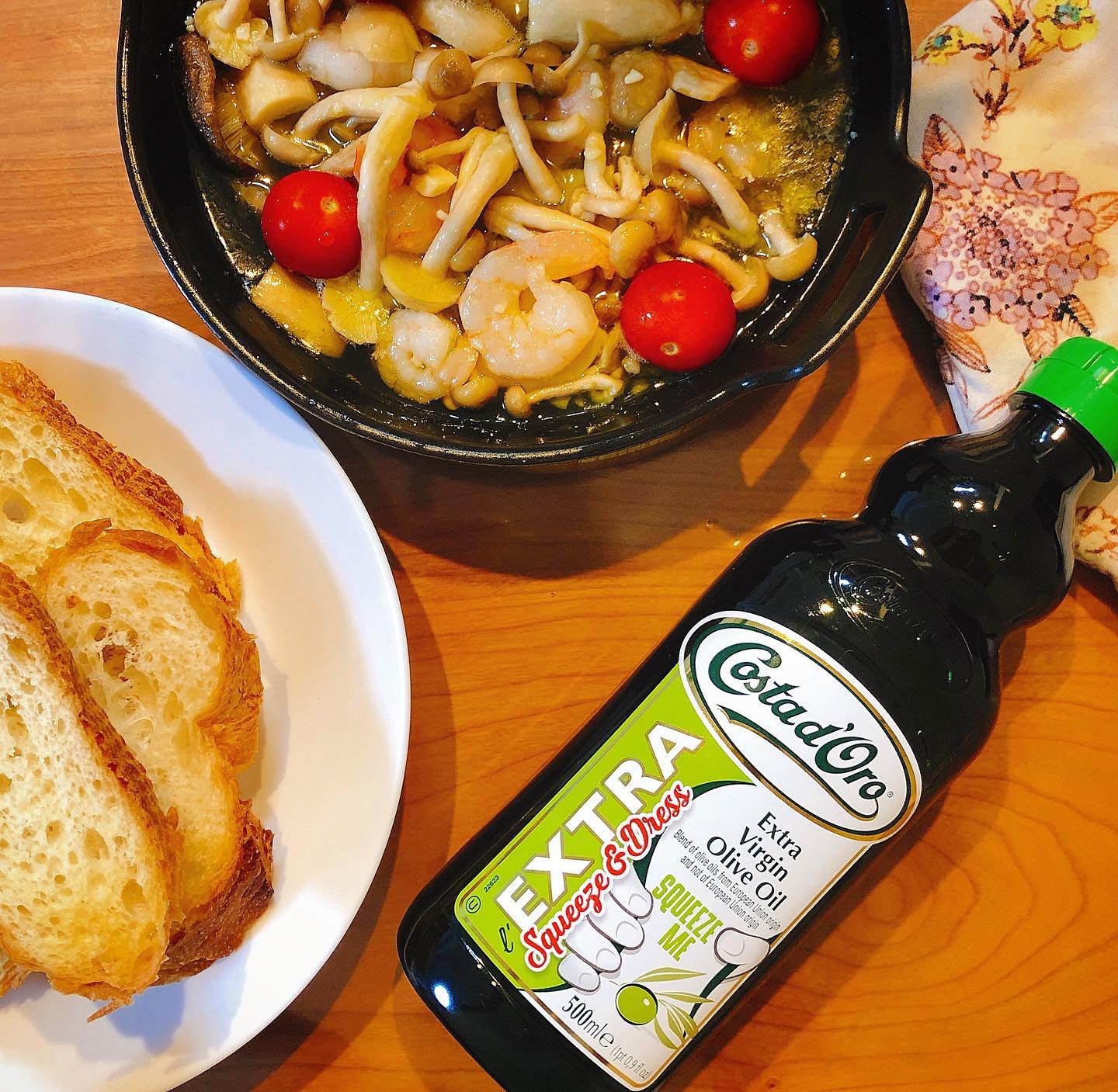 コスタドーロ エクストラヴァージンオリーブオイル スクイーズタイプ 500ml コスタドーロ エクストラヴァージンオリーブオイルを使ってみました。 こちらのオリーブオイルの大きな特徴は ✔︎注ぎ口に十字型に切れ目の入った半透明の膜により、液垂れしない! ✔︎ 注ぎ口についている膜によって空気を通しにく、品質の低下を防ぐ! ✔︎軽くて使いやすいPETボトル入り! 我が家はサラダ油は使わず基本的にはオリーブオイルを使って料理を作っているんですがビンで重いし、液だれするしでちょっと扱いにくいなと思っていました。 こちらのオリーブオイルはそんな悩みを全部解決してくれた便利な商品です! まずはオリーブオイルを大量に使うアヒージョを作ってみました。 味見しつつ作ったので何回かに分けてオリーブオイルを投入しましたが、液だれしないのがとにかく便利!✨ 肝心のお味は一番搾りのオリーブオイルだけあってオリーブの風味を感じつつ くせがなくて食べやすい♡ パンとの相性も良かったです! 普段使っているように炒め物の時にも使いましたが、注ぎ口も細いのでドバッと出ることなく調節しやすいのも良かったです。 大きなフライパンでも食材にまんべんなくかかる点もGOOD👍 お味よし、便利で使いやすいコスタドーロ エクストラヴァージンオリーブオイル ぜひ皆さんも使ってみてください♡ #コスタドーロ #オリーブオイル #富士貿易 #fujitrading #oliocostadoro #monipla #fujitrading_fan #アヒージョ #夜ご飯 #よるごはん