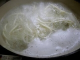 五島灘の美しい海水を汲み上げ、じっくりと炊きあげるとミネラル分を多く含む 「甘い塩」ができあがります。大吟醸の小麦粉をこの五島灘の甘い塩と水で丁寧にこね、一晩熟成 させると、延ばしやすい生地になります。この生地を伝統の手延べ技法で無理なく延ばし、ゆっくりと 時間をかけて乾燥させて仕上げます。