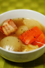 伏高さんの鰹荒仕上節のおだしで、煮込みうどんを作りましたやさしい、上品な荒節の出し汁に対して、こちらは、パンチの効いた、濃縮されたようなお味ですおいしい出し汁なので、こちらも、ストレートにそのお味を楽しめるメニューということで、うどんにしましたそして、二番だしも洋風スープのベースとして活用して… 2011/11/20