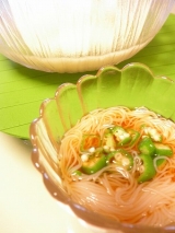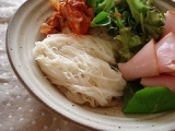 毎日暑いですねおうちでのそうめん率がかなり高いです!娘は大好きで、毎回喜んでくれるので嬉しい限り♪そんな我が家に届いたのが、「淡路素麺 極細」茹でる前は頼りないぐらい細いんだけど、予想に反してコシがある!細い麺好きな夫にとっても好評でした♪ひとりのお昼ご飯にキムチサラダ麺にしました築地仲卸 … 2010/08/16