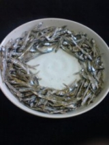 本年10月初旬、九十九里近海でとれた片口ワイシを素干しにして製造した、体長4㎝~6㎝の白口の田作です。昨年に引き続き九十九里沿岸の沖模様が悪い中、数少ない九十九里産田作を手に入れる事ができました。豊作祈願の田作(たづくり)はおせち料理には欠かせません。
