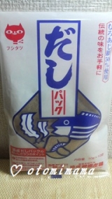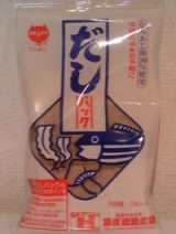 ティーパックのような袋にかつお節や煮干、昆布等が入った商品です。