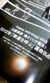 【NumeroTOKYO Vol53】 今月の特集は、人気占星術家橘さくらさんが占う 幸福を呼ぶ星占い2012年 占いを読むのは大好きなので、じっくりと 2012年のいて座はなかなか良さそうです いいことの起こる日が書かれていたので、 さっそく手帳&iPhoneカレンダーには… 2011/12/25