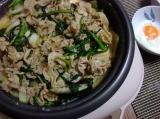つい先日、日記に書いた本(→リンク★ ) 【別冊ESSE】読者が選んだ!鍋とスープのベストレシピラキング から、またまた作りました 今回は主人が作ってくれましたよ 豚こまのみそすき 「毎日飽きないごちそうひとり鍋」コーナーから選んだ鍋で 材料を増やして作ってました 温泉卵とか… 2014/01/21