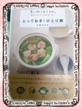 扶桑社さんの「とっておき!ひとり鍋」の読者モニターをさせて頂きました月曜から金曜までの5日分のお買い物リストが載っていて、それを使い切るひとり鍋レシピが紹介されている本です私は一人暮らしではないですが、もし一人暮らしをしているときにこの本に出会っていたらよかったかもすぐ手に入る食材だし、何より無駄… 2013/01/22