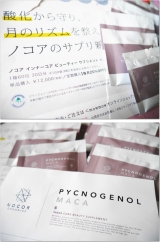 ノコア インナーコアビューティーサプリメント ピクノジェノール+マカのご紹介です(^^)女性のお悩みを解決するサプリメントがNOCORより新登場♪女性のめぐりと活力をテーマに大人の女性のエイジングケアや不妊や妊活対策、PMSや子宮内膜症や子宮筋腫、更年期など女性特有の不調や悩みにアプローチするサ… 2016/06/10