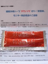 琉球ハーブ「クワンソウ」ゼリー 和萱美当選 株式会社ガンヨボウさまよりいただきました 味はマンゴー風味のゼリーでツルっとした口当たりでおいしいです これのおかげか夜食べてからお風呂に入り、その後スキンケアで顔の手入れをしてからすぐに床についたら、すぐに熟睡することが… 2010/01/03
