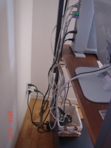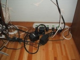 旦那様に設置してもらいました 我が家のパソコンデスクはキーボード用の引き出し部分があるのですが、設置したことにより、最後までしまえなくなっちゃいました が、ゴチャゴチャなコードがスッキリ!(USBの差込口付近がごちゃついて見えますが…) コードの下の床掃除がやっとできました! 娘にコード… 2010/07/06