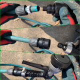 金属の頑丈なノズルでありながら、ラバーグリップで手にフィットする使い心地にもこだわった散水メタルノズルです。