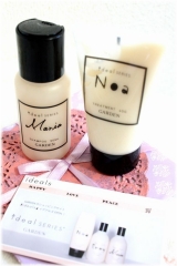 こんなにかわいくシールでデコられた箱の中に これまたかわいいカードが 裏には手書きのメッセージ そして、シャンプーの詰替みたいな袋の中身は ideal SERIES mini シャンプー&トリートメント ideal SERIESは、東… 2012/08/30