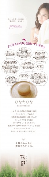 「大地のちからを素肌のちからに」さまざまな生命を豊かに育む大地。陽鄙(ひなたひな)は、敏感になりやすい肌のために、大地の力に着目しました。土に含まれる植物性乳酸菌と酵母、ハチミツやオリーブ油など天然由来の保湿成分が溶け込んだ極上マシュマロ泡が汚れをやさしく落としながら肌本来の「健やかさを保つちから」を応援、洗うたびに生き生きとしてうるおいに満ちた肌へと導きます。
