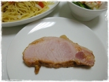以前 応募していた モニプラさんのロースハム400gが 当たりました!家族全員 ハム好きなのですがハムステーキは 初めて400gの塊ってこんな感じこれを厚さ1cmで切り表面に 軽く 隠し包丁をいれフライパンで 焼いただけ今回は 素材の味を 楽しんじゃおう とソースも 塩コショウも しなかったんだけど… 2011/05/11