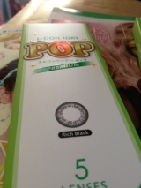 LCON 1DAY POP Rich Black この前届きましたどーーん 一箱5個入りようするに片目一箱だね✴︎ わたしはどっちも度なし れんずに紫はいってるから ナチュラルな黒になるで♪ つけてみるとこんな感じ もともと裸眼でもそんなに黒目小さくないんだ… 2014/02/05