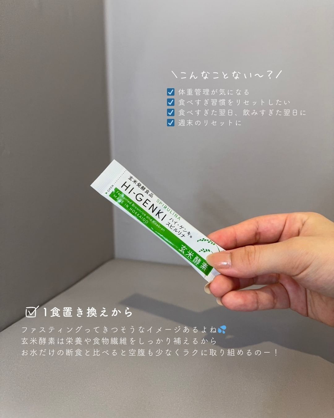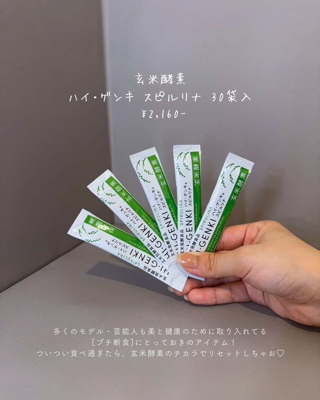 @kirei_kenkyujo △他の投稿はこちら💓 ファスティングって辛くない? そんなときはプチ断食がおススメだよ~! 『玄米酵素 ハイ・ゲンキ スピルリナ 30袋入 ¥2,160-』 以前はど~しても食欲に負けて食べてたのに これ始めてから驚くほどお腹減らない!カラダ軽い! ついつい食べ過ぎたら、 玄米酵素のチカラでリセットしちゃお♡ 後で見返せるように保存しておいてね📌 ・・・・・・・・・・・・・・・・・・・ いつもご覧いただきありがとうございます♪ @kirei_kenkyjo です! 美容健康の豆知識・お得情報を発信中📢 フォローやいいねコメントをしていただけると とても嬉しいです🙇🏻♀️✨️ ・・・・・・・・・・・・・・・・・・・ #PR #株式会社玄米酵素 #玄米酵素 #ハイゲンキ #スピルリナ #ファスティング #酵素ファスティング #プチ断食 #monipla #genmaikoso_fan