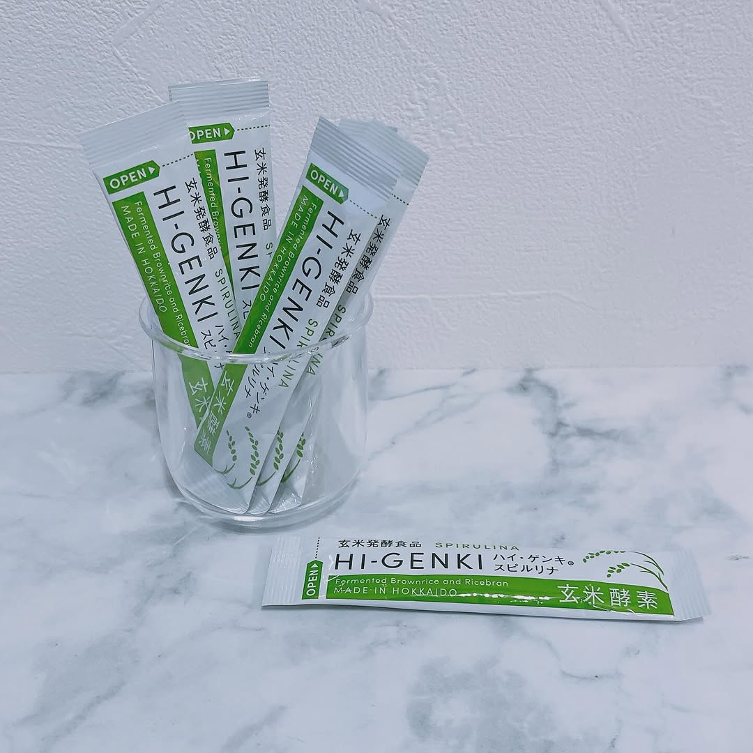 現代人は食生活の偏りにより、ビタミン・ミネラル、食物繊維、酵素などが不足しがち。「玄米酵素」は、そんな皆様の毎日の栄養をサポート! 食物繊維たっぷりで、ビタミンB群やアミノ酸なども豊富。さらに麹菌による発酵で各種酵素が生まれています。健康・美容に必要な栄養素が40種類以上含まれているため、白米を食べていても玄米食以上の栄養をとることができます。 その玄米酵素にスーパーフード【スピルリナ】をプラスしたのが「ハイ・ゲンキ スピルリナ」です。 スピルリナは、β-カロテン、ビタミンB群、鉄分、葉酸、葉緑素、食物繊維、核酸、フィコシアニンなど、50種以上の健康に役立つ成分を含む藻類の一種。クロレラと同じ藻類で、細胞壁が薄く消化吸収がよいのが特徴です。野菜不足の方、お酒が好きな方、鉄分が不足気味の方などにオススメ。 ●315g(3.5g×90袋入)●原材料:玄米胚芽・表皮、大豆、玄米、スピルリナ、麹菌 https://shop.genmaikoso.co.jp/cart_product/Product.aspx?ProductID=0000202