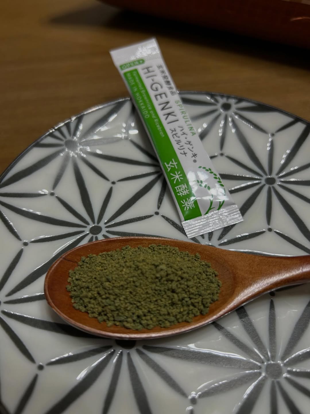 現代人は食生活の偏りにより、ビタミン・ミネラル、食物繊維、酵素などが不足しがち。「玄米酵素」は、そんな皆様の毎日の栄養をサポート! 食物繊維たっぷりで、ビタミンB群やアミノ酸なども豊富。さらに麹菌による発酵で各種酵素が生まれています。健康・美容に必要な栄養素が40種類以上含まれているため、白米を食べていても玄米食以上の栄養をとることができます。 その玄米酵素にスーパーフード【スピルリナ】をプラスしたのが「ハイ・ゲンキ スピルリナ」です。 スピルリナは、β-カロテン、ビタミンB群、鉄分、葉酸、葉緑素、食物繊維、核酸、フィコシアニンなど、50種以上の健康に役立つ成分を含む藻類の一種。クロレラと同じ藻類で、細胞壁が薄く消化吸収がよいのが特徴です。野菜不足の方、お酒が好きな方、鉄分が不足気味の方などにオススメ。 ●315g(3.5g×90袋入)●原材料:玄米胚芽・表皮、大豆、玄米、スピルリナ、麹菌 https://shop.genmaikoso.co.jp/cart_product/Product.aspx?ProductID=0000202
