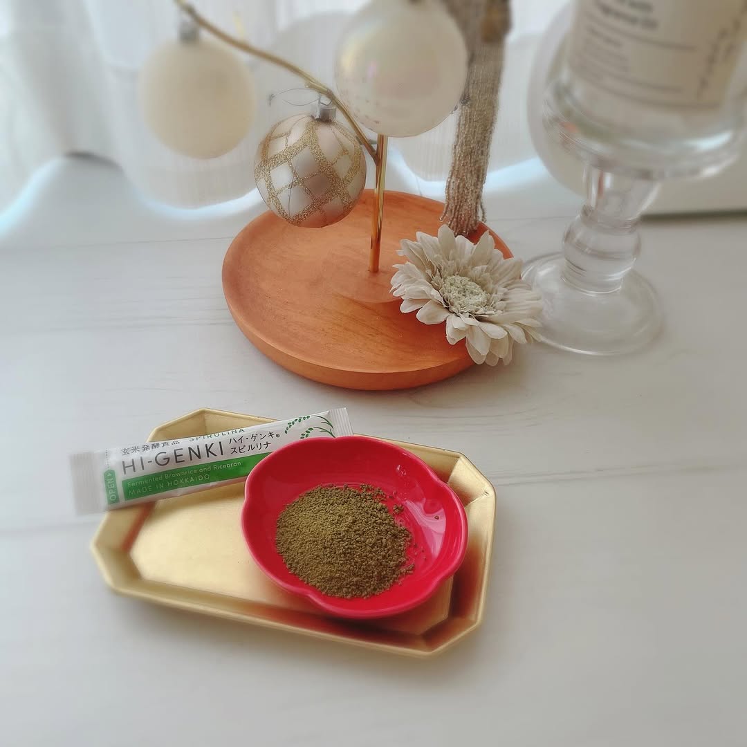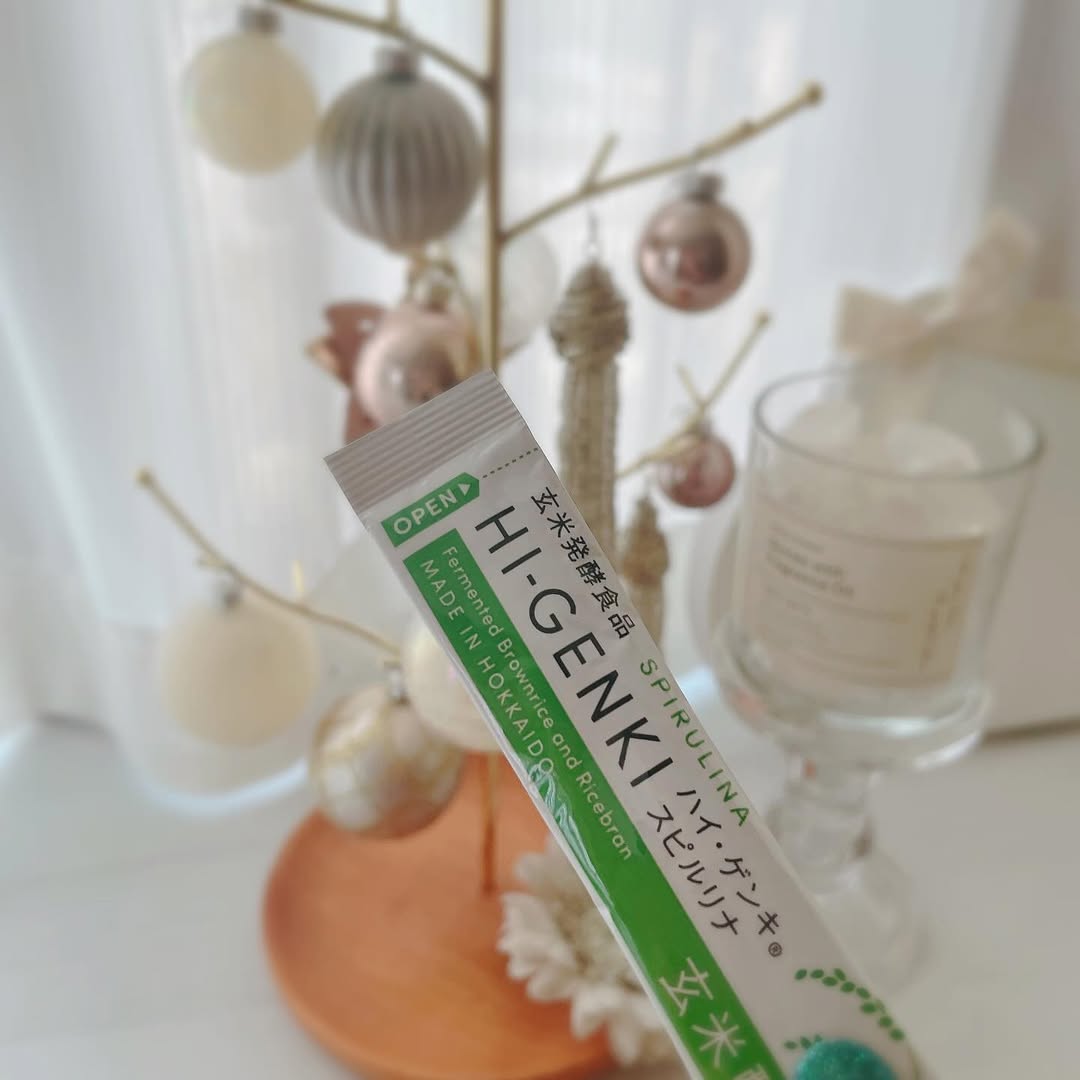 現代人は食生活の偏りにより、ビタミン・ミネラル、食物繊維、酵素などが不足しがち。「玄米酵素」は、そんな皆様の毎日の栄養をサポート! 食物繊維たっぷりで、ビタミンB群やアミノ酸なども豊富。さらに麹菌による発酵で各種酵素が生まれています。健康・美容に必要な栄養素が40種類以上含まれているため、白米を食べていても玄米食以上の栄養をとることができます。 その玄米酵素にスーパーフード【スピルリナ】をプラスしたのが「ハイ・ゲンキ スピルリナ」です。 スピルリナは、β-カロテン、ビタミンB群、鉄分、葉酸、葉緑素、食物繊維、核酸、フィコシアニンなど、50種以上の健康に役立つ成分を含む藻類の一種。クロレラと同じ藻類で、細胞壁が薄く消化吸収がよいのが特徴です。野菜不足の方、お酒が好きな方、鉄分が不足気味の方などにオススメ。 ●315g(3.5g×90袋入)●原材料:玄米胚芽・表皮、大豆、玄米、スピルリナ、麹菌 https://shop.genmaikoso.co.jp/cart_product/Product.aspx?ProductID=0000202