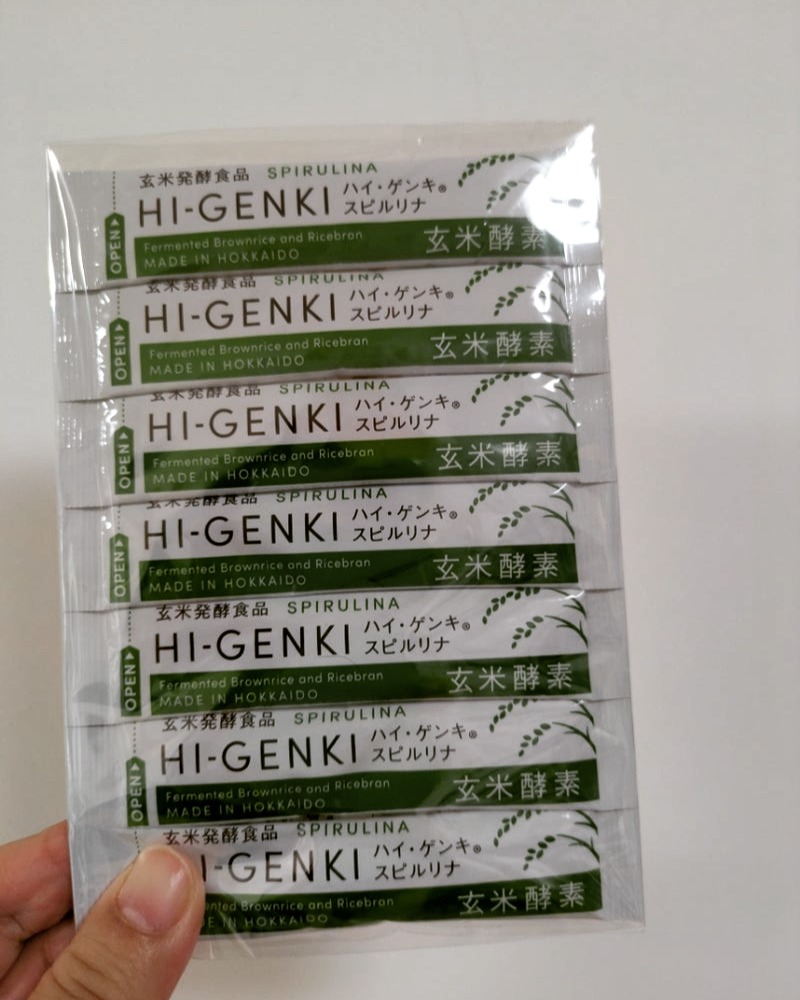 現代人は食生活の偏りにより、ビタミン・ミネラル、食物繊維、酵素などが不足しがち。「玄米酵素」は、そんな皆様の毎日の栄養をサポート! 食物繊維たっぷりで、ビタミンB群やアミノ酸なども豊富。さらに麹菌による発酵で各種酵素が生まれています。健康・美容に必要な栄養素が40種類以上含まれているため、白米を食べていても玄米食以上の栄養をとることができます。 その玄米酵素にスーパーフード【スピルリナ】をプラスしたのが「ハイ・ゲンキ スピルリナ」です。 スピルリナは、β-カロテン、ビタミンB群、鉄分、葉酸、葉緑素、食物繊維、核酸、フィコシアニンなど、50種以上の健康に役立つ成分を含む藻類の一種。クロレラと同じ藻類で、細胞壁が薄く消化吸収がよいのが特徴です。野菜不足の方、お酒が好きな方、鉄分が不足気味の方などにオススメ。 ●315g(3.5g×90袋入)●原材料:玄米胚芽・表皮、大豆、玄米、スピルリナ、麹菌 https://shop.genmaikoso.co.jp/cart_product/Product.aspx?ProductID=0000202