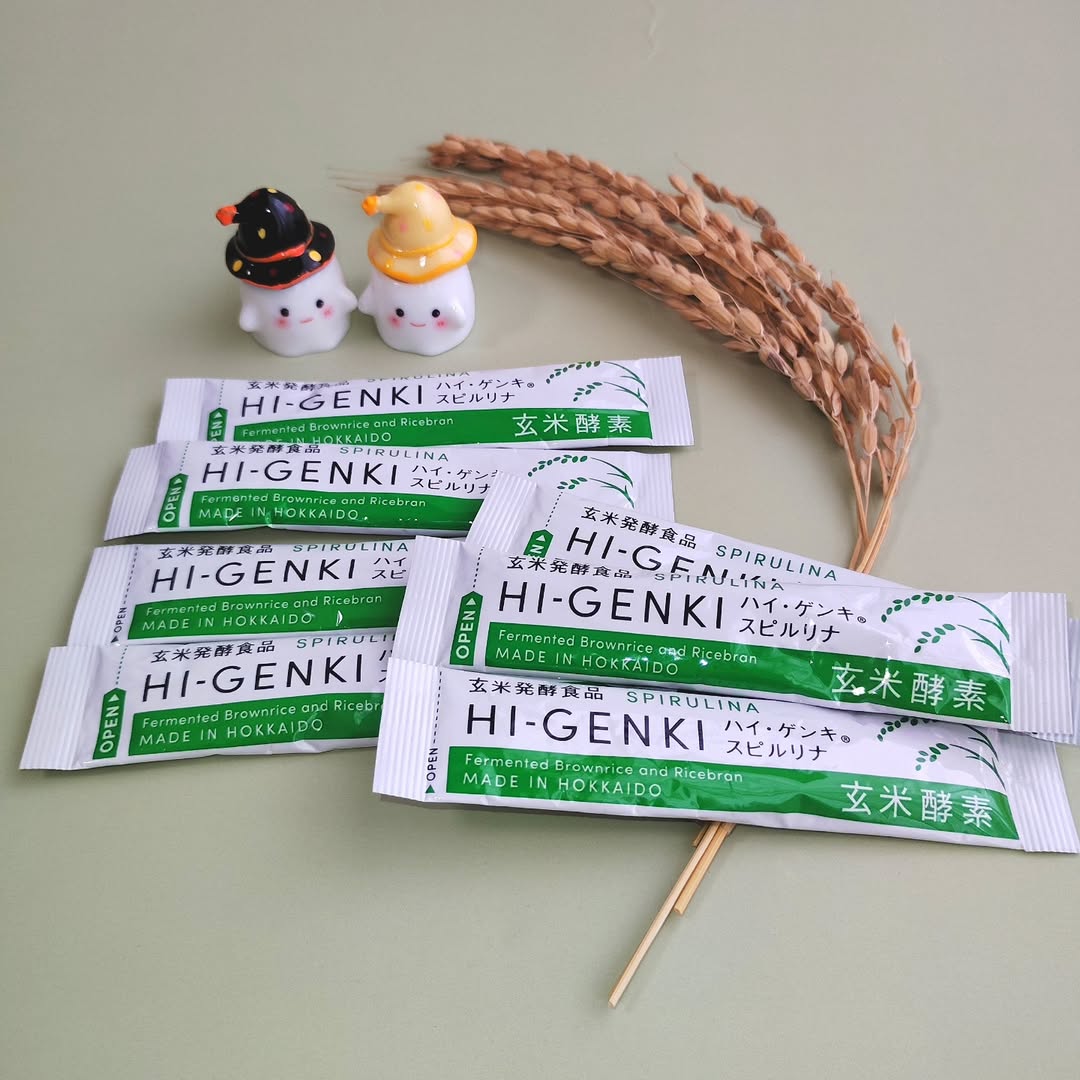 現代人は食生活の偏りにより、ビタミン・ミネラル、食物繊維、酵素などが不足しがち。「玄米酵素」は、そんな皆様の毎日の栄養をサポート! 食物繊維たっぷりで、ビタミンB群やアミノ酸なども豊富。さらに麹菌による発酵で各種酵素が生まれています。健康・美容に必要な栄養素が40種類以上含まれているため、白米を食べていても玄米食以上の栄養をとることができます。 その玄米酵素にスーパーフード【スピルリナ】をプラスしたのが「ハイ・ゲンキ スピルリナ」です。 スピルリナは、β-カロテン、ビタミンB群、鉄分、葉酸、葉緑素、食物繊維、核酸、フィコシアニンなど、50種以上の健康に役立つ成分を含む藻類の一種。クロレラと同じ藻類で、細胞壁が薄く消化吸収がよいのが特徴です。野菜不足の方、お酒が好きな方、鉄分が不足気味の方などにオススメ。 ●315g(3.5g×90袋入)●原材料:玄米胚芽・表皮、大豆、玄米、スピルリナ、麹菌 https://shop.genmaikoso.co.jp/cart_product/Product.aspx?ProductID=0000202