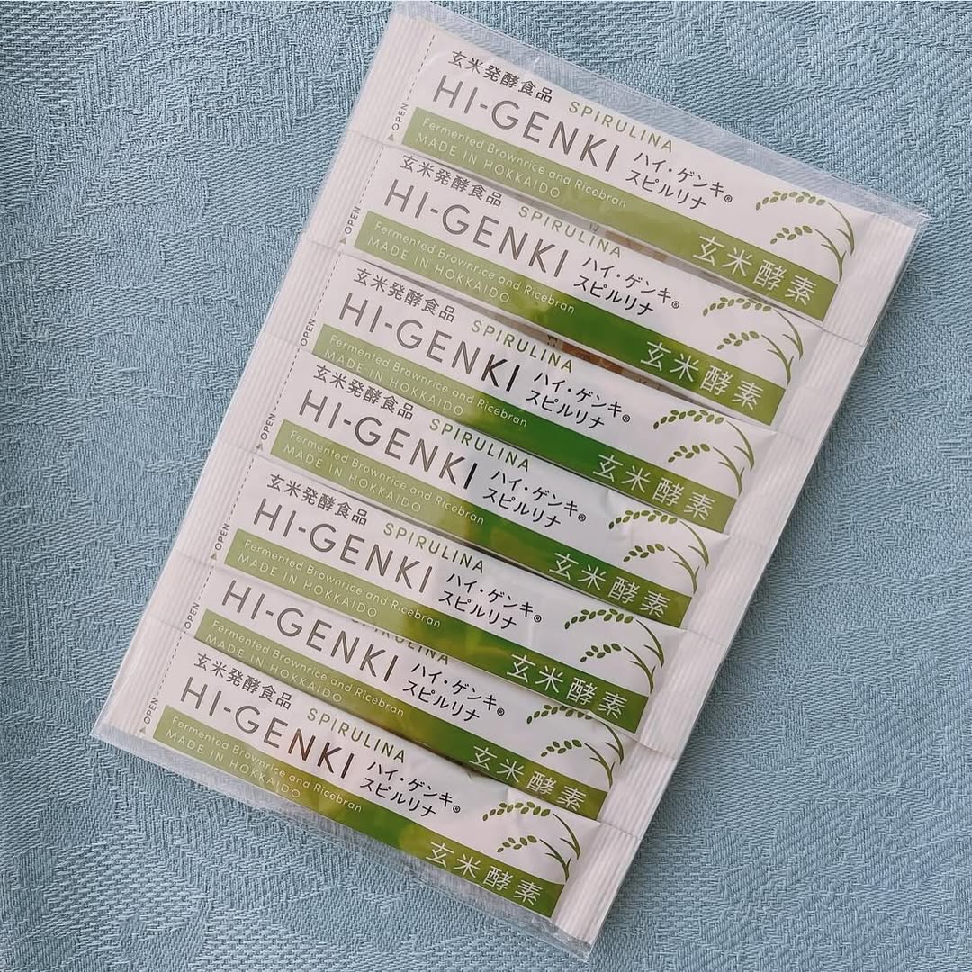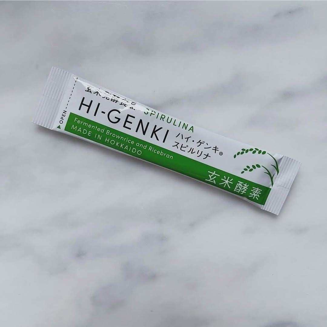 現代人は食生活の偏りにより、ビタミン・ミネラル、食物繊維、酵素などが不足しがち。「玄米酵素」は、そんな皆様の毎日の栄養をサポート! 食物繊維たっぷりで、ビタミンB群やアミノ酸なども豊富。さらに麹菌による発酵で各種酵素が生まれています。健康・美容に必要な栄養素が40種類以上含まれているため、白米を食べていても玄米食以上の栄養をとることができます。 その玄米酵素にスーパーフード【スピルリナ】をプラスしたのが「ハイ・ゲンキ スピルリナ」です。 スピルリナは、β-カロテン、ビタミンB群、鉄分、葉酸、葉緑素、食物繊維、核酸、フィコシアニンなど、50種以上の健康に役立つ成分を含む藻類の一種。クロレラと同じ藻類で、細胞壁が薄く消化吸収がよいのが特徴です。野菜不足の方、お酒が好きな方、鉄分が不足気味の方などにオススメ。 ●315g(3.5g×90袋入)●原材料:玄米胚芽・表皮、大豆、玄米、スピルリナ、麹菌 https://shop.genmaikoso.co.jp/cart_product/Product.aspx?ProductID=0000202