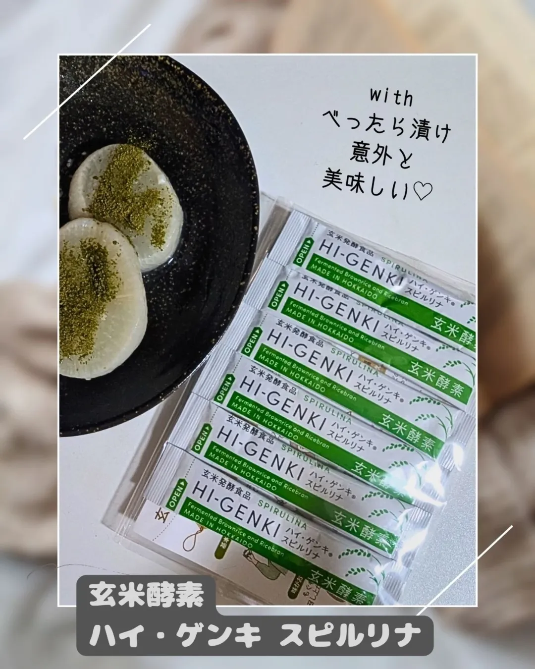 玄米酵素のある生活 今回は投稿遅くなってしまいました ずっと少しずつ使っていて使い切りました お水と飲むファスティング形式もありますが 私は食材として、かける系楽しんでいます 色が綺麗でいいですよね! べったら漬けにかけても美味しかったですよ♡ #PR #株式会社玄米酵素 #食べ過ぎ #お腹ぽっこり #体重管理 #食物繊維 #健康習慣 #monipla #genmaikoso_fan