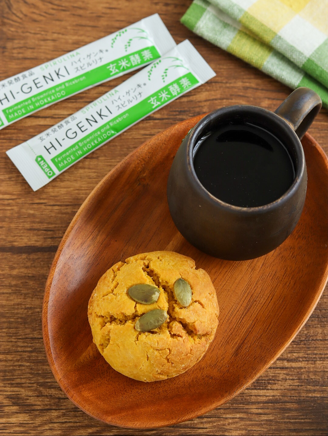 。 🎃かぼちゃスコーン かぼちゃの米粉スコーンで コーヒータイム♪ かぼちゃの香りにほっこり🥰 やさしい甘さでコーヒーとも良く合います。 . . 『玄米酵素ハイ・ゲンキ スピルリナ』 と一緒に♡ (@genmaikoso_official ) スーパーフードの#スピルリナ 入り なのが嬉しい😊 手軽に栄養がとれて 疲れているときにもぴったりです✨ . . #PR #株式会社玄米酵素 #朝起きれない #疲れを取りたい #スーパーフード #monipla #genmaikoso_fan #おうちごはん #おうちカフェ #おやつタイム #管理栄養士 #料理研究家 #スコーン好き