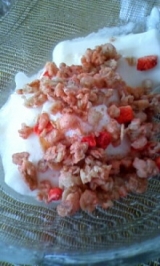 健康食品の原料屋さんの有機シリアルです オート麦砂糖パーム油小麦ライスパフいちご小麦シロップ すべてが有機ですほかに、ハチミツと塩だけが原料 ほんのり甘いので、ヨーグルトにかけてみました 食感も見た目もとっても良いです♪ 美味しい 朝食に食べたけど、おや… 2011/10/25