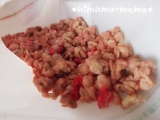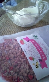 今日は寒くなるって聞いてたけど、日の当たるところに出ると暑いぐらいです 先日、原料屋ドットコム様から、有機JASシリアルストロベリーミックスが届いたので、それを使ってクッキーを焼いてみました♪ 有機素材の麦フレーク、砂糖、バーム油、小麦フレーク、ライスパフ、いちご、小 2011/10/26