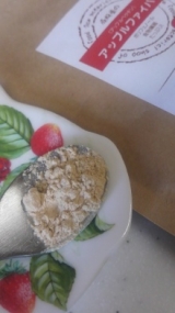 原料屋のアップルファイバー頂きました 国産「青森産りんご」100%使用で、食物繊維たっぷりです きな粉っぽい色です りんごジュースに入れて頂きましたが失敗しました 溶けませんでした 冷たいものは、お湯でペースト状にしないといけなかったみたいですお気をつけ下さい… 2013/09/06