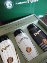 あの復刻版のユニフォーム&ホーム&ビジターユニフォームボトルに入ったトニックシャンプー、ボディーソープ、ボディローションの3つのアイテムを詰め込んだギフトセットです。