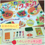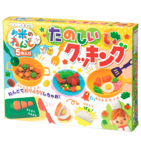 お米でできた安心素材のねんど5色とフライパンや鍋、まな板などのキッチンツールが入ったセットです。粘土で作ったニンジンを切ったり、フライパンや鍋におかずを入れてみたり、楽しくままごとあそびができます。