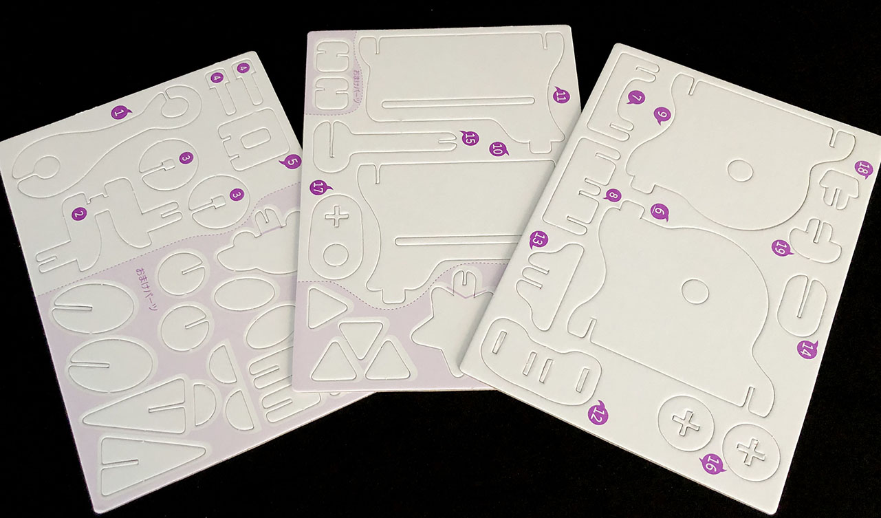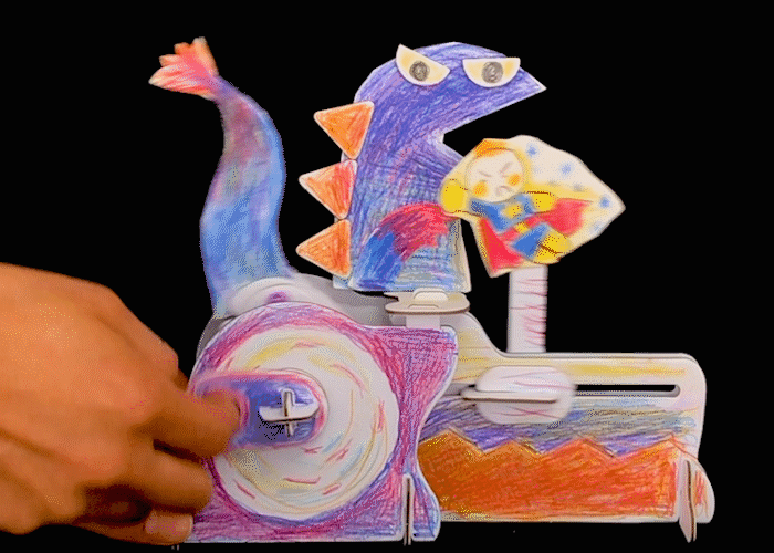パーツを組み立てて、実際の機械工学でも使われている機構を簡単につくることができるキットです。ハサミやのりを使わずに作ることができます!