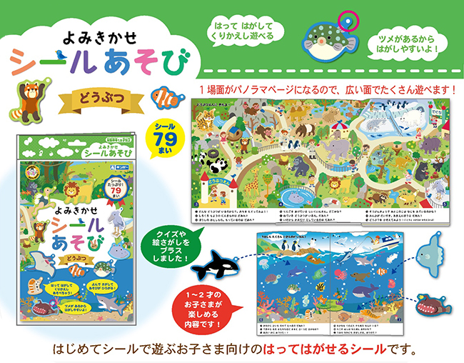 はじめてシールで遊ぶお子さま向けの貼ってはがして、くりかえし遊べるシールブックです。