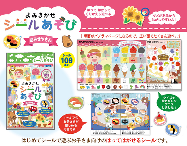はじめてシールで遊ぶお子さま向けの貼ってはがして、くりかえし遊べるシールブックです。