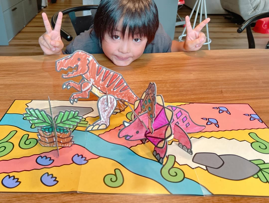 はじめてのダンボール工作キット きょうりゅう 簡単にはずせてとても塗りやすく作りやすかったです♪ 子供の創作意力が増していつも手伝って〜! って言われますが今日は全部するって張り切ってました🙌 #PR #銀鳥産業株式会社 #ダンボール工作 #段ボール工作 #工作キット #monipla #gincho_fan