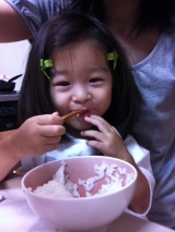 最近ご飯を沢山食べてくれるようになった娘さん自分で食べるトレーニングもそろそろして欲しいので、こちらのお茶碗を使い始めました♪早速チャレンジ!あ、断乳してから甘えん坊になり、自分の椅子ではなく私の膝で食べている娘です(笑)あーんパクっ!うふふおいし綺麗に食べたよ!ジャーン!!小さめの娘のちょっ… 2012/09/20
