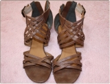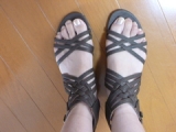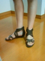 プチプラで美脚効果のあるグラディエーターサンダル ブラック、キャメル、ブラウンの3色展開 ブラウンをGETしました かかとで合わせるとこんなに大きいけど 履いてみたら気になりません(↓立って上から撮った写真) 23cmのやや幅広な足なのでMサイズにしましたが、 幅狭さんはワンサイズ下… 2011/06/07