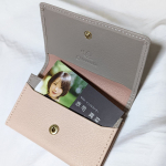 開けると、3箇所に名刺を入れられる箇所があるためお客様用と自分用に仕分けも出来、背面ポケットにICカードも入れられる万能なカードケース。