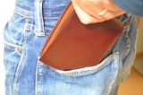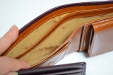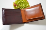 イタリアのベジタブルタンニング協会認定のイタリア製レザーを使用した二つ折りウォレット。