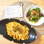 平打ち麺にすることでソースがよく絡む味わい深いパスタに。そしてこの食べごたえで糖質量1食21.1gまでコントロール。